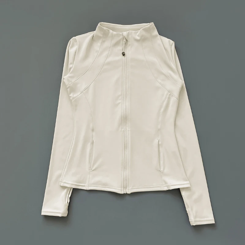 Stay ready for any workout with this sleek Women’s Quick-Dry Running Jacket. The slim-fit, zip-up design offers a flattering silhouette while providing flexibility and breathability. Thumb holes add extra comfort for running, yoga, or training.